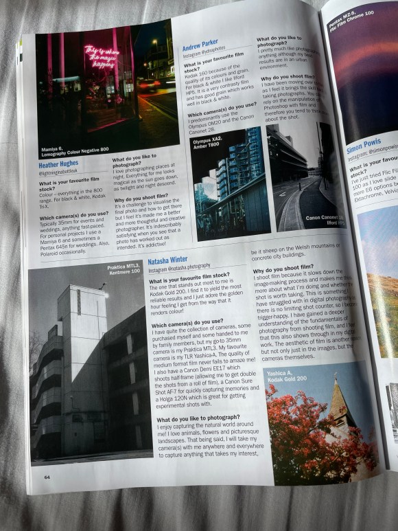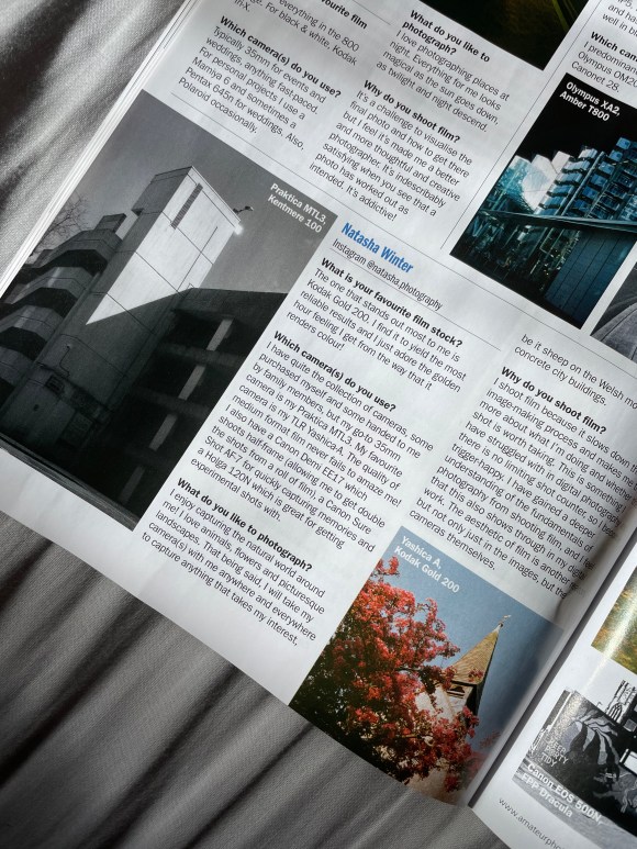 Analogue Wonderland, a film retailer and development lab, reached out to their community to see if anyone would be interested in contributing photos for a piece on favourite film stocks in the Amateur Photogrpaher Magazine. I submitted my photos and answered their questions about my favourite films and equipment, and a few days later I recieved an e-mail to say that I had been selected to be featured!